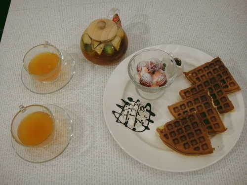 今天比較節制, 只點 現煮新鮮水果茶 & 草莓鬆餅, 再po一下圖, 上次沒把鬆餅厚度拍出來, 這次有拍出來^^