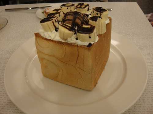 我們點的是 香蕉巧克力蜜糖土司,很大一份, 三分之一條土司的量.
