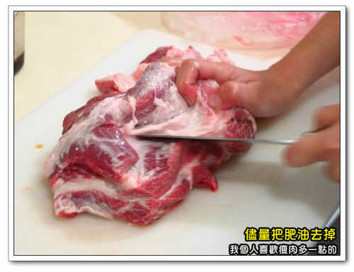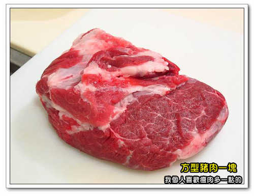 應該要買方型豬胛心肉一塊,(肉攤給我的好像不是胛心肉..好肥)