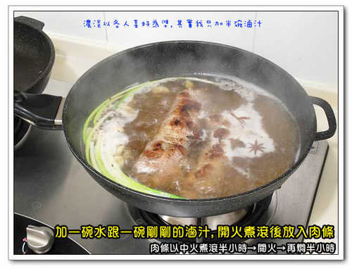 4.準備一鍋水,放調味料煮滾, 放入肉捲煮滾30分,關火後再燜30分