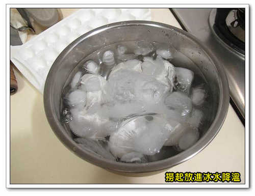 4分鐘後關火,馬上把蛋撈起放到冰水中,