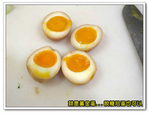 把蛋切開會發現蛋白熟了而蛋黃半熟,這樣就是黃金蛋。