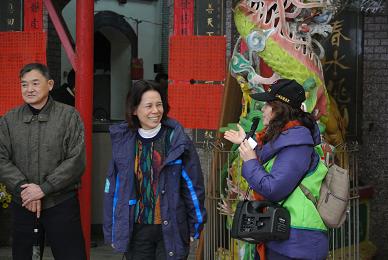 大家陸續下車聆聽張萬金老師為我們解釋山門與普安堂的相關資料