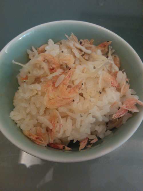 生米+有機櫻花蝦+水晶吻+少許鹽+一匙齊民油蒜