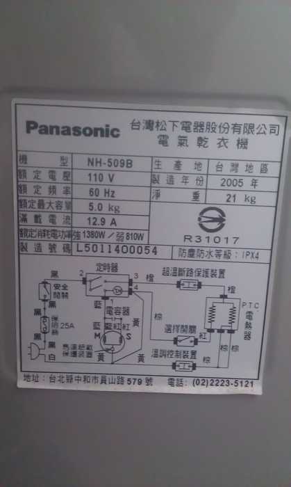 Panasonic 乾衣機