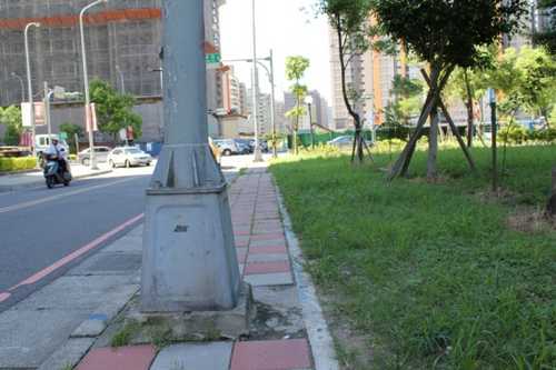 大德路的人行道 - 電線桿竟然佔滿整個人行道, 人是要走馬路還是草地?