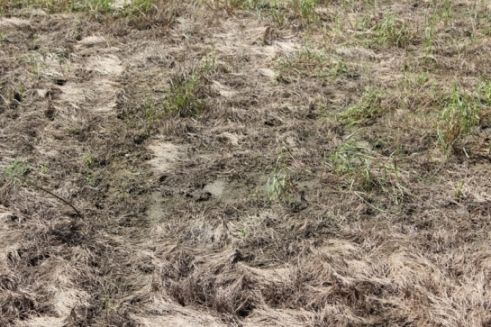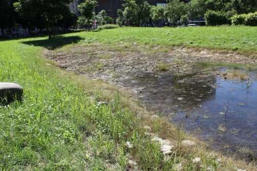 水池乾掉的部分, 看起來草是刻意被弄死的, 因為池子周遭的草都很綠, 不知道是不是要枯草來作為生態池的基礎(非此方面專家,純臆測).