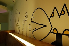 店家內的壁畫, 似乎訴說著這是可以讓人返回純真童年的地方.