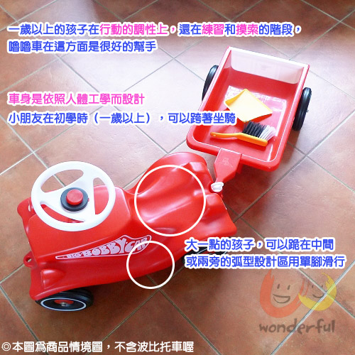 2. 車身是依照人體工學而設計,可幫助剛開始學步的北鼻增進全身的協調性 (如何雙腳交換推動車子,如何用手操控方向盤改變方向等等)。