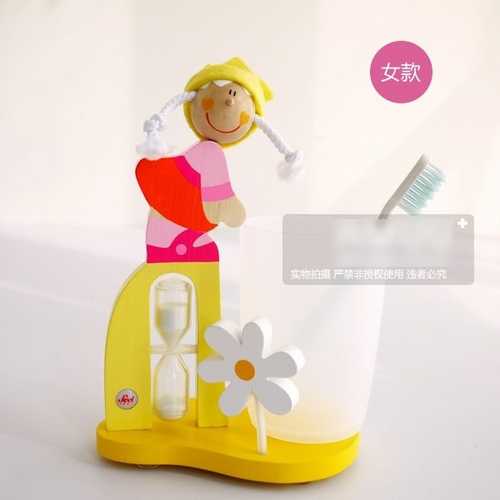 旁邊有個小沙漏,寶寶刷牙時候,把沙漏倒轉,可以計時的,