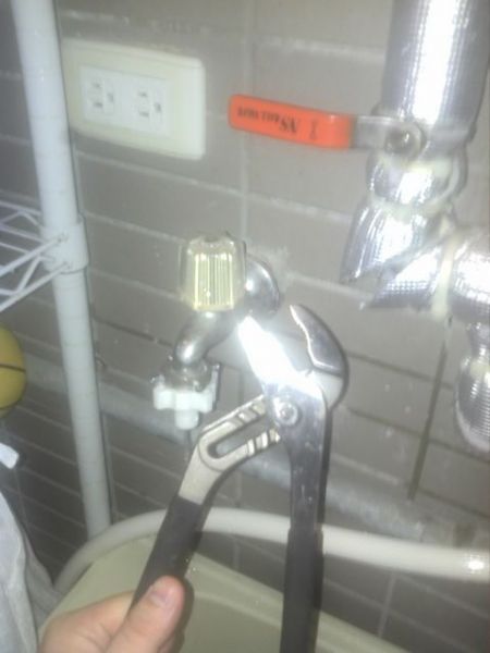 先把管內的水放光! 拿出水管鉗 (這個鉗子是好東西,他的痕超長的,不會輕易的跑掉,並且他超便宜的啦,才一百出頭,這個是大潤發自有品牌的哦,土城、中和店都有賣)