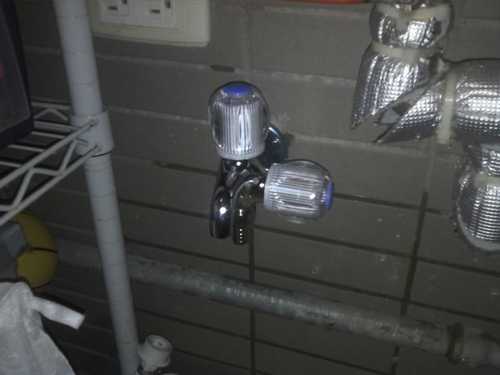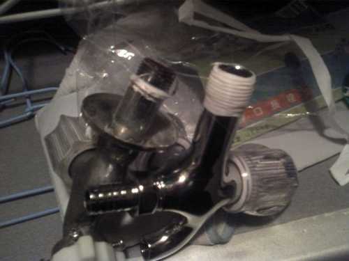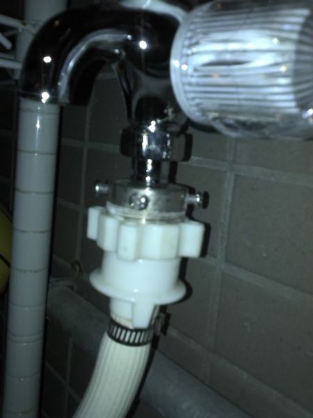 最近買了一台二手的洗衣台 (超便宜才 500 元, 9 成新) 。 但是家中後面的洗衣機旁的水龍頭只有一個單頭,所以要用洗衣台就要拆來拆去的,十分不便! 所以今晚做了一下改造