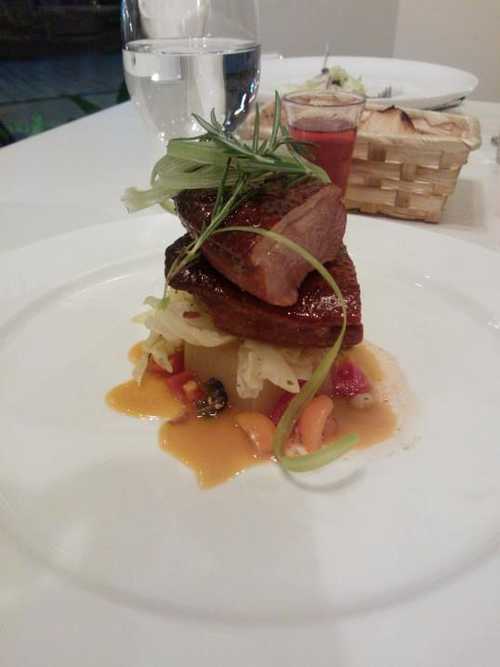 主餐:花鼠爸選本日特餐(法式芥末子豬膝);我選(燒烤鴨胸)