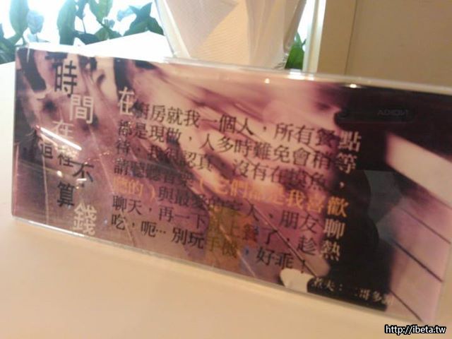 我很欣賞的桌牌文字~ (可惜今天服務生新手多 客人也多 服務流程有些小亂 老闆快教會她們吧)