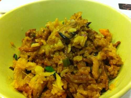 (4)炒香後加一杯水放入飯鍋繼續煮熟即可