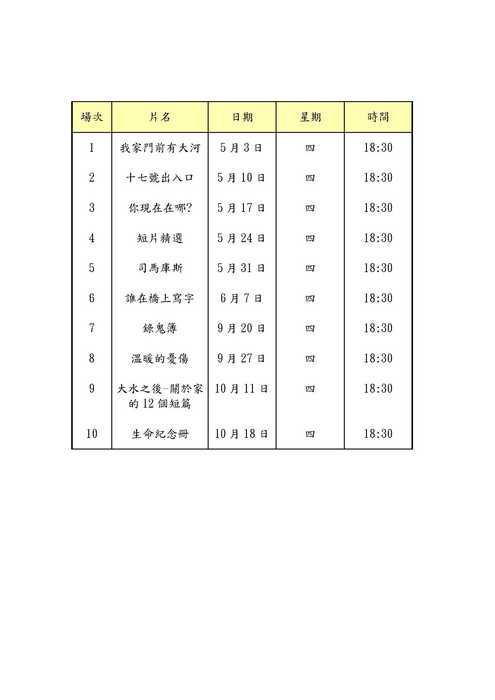 附件為各電影完整之場次播放時間及地點,請下載觀看!