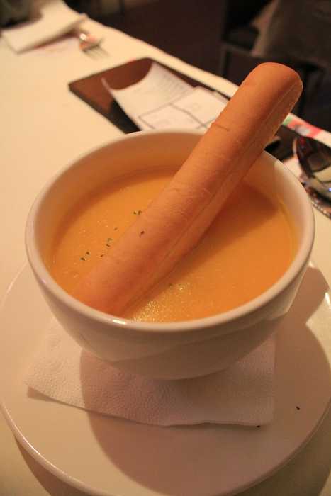 女王點的是杏包菇南瓜濃湯...濃湯+麵包~~我原本還以為....哪來的那麼大隻的杏包菇~~原來...那一隻是麵包!!