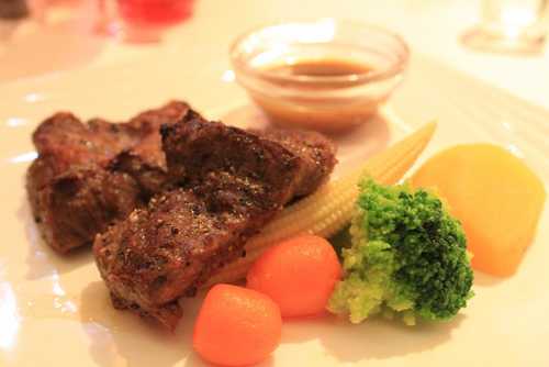 之前就有聽朋友說....來西堤一定要點原塊牛排~~於是我就點了這一道主餐~~小姐建議七分熟.....但我很怕看到血在盤子裡流來流去~~所以膽小的我還是加了一分.....八分熟!!