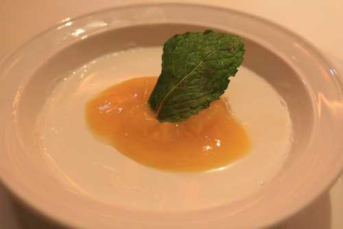 主菜吃完了還有甜點~~這一道是香榭奶酪~~奶酪吃起來鮮奶味很濃郁....上面還有水蜜桃切丁和水蜜桃醬!!