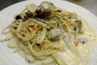 說pizza現烤要晚一點上~就先吃麵吧!!