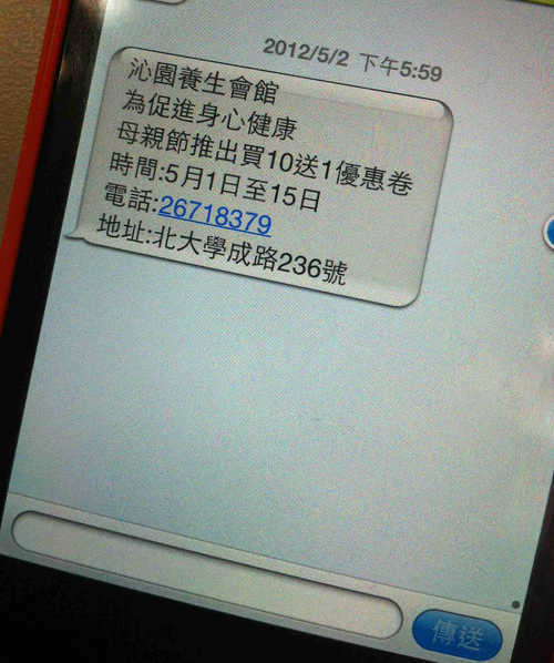 我: ..... (廢話!), "不然你用什麼號碼發的簡訊!?" {:4_192:}