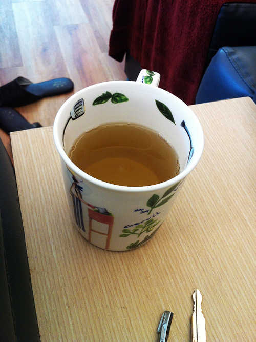 喝了茶, 開始泡腳.........嗚嗚..(羞)..露出毛腿了..{:4_166:}.(羞) {:4_142:}