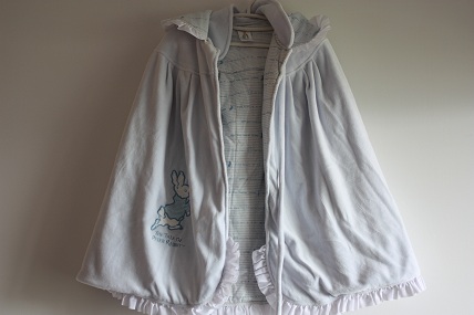 7. 斗篷披風:可愛嬰兒藍.過了嬰兒期,還能繼續當披風,帽子可拆.不過有一處有泛黃痕跡.