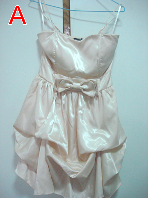 A.不規折設計蝶結奶油澎裙金色洋裝 肩帶可拆