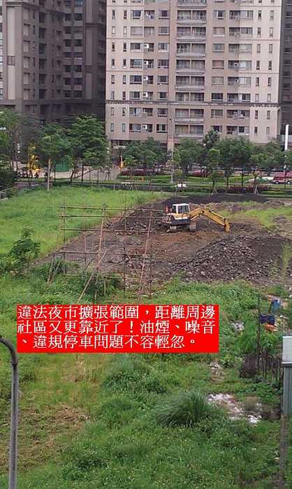 如果這座違法夜市直接遷移到學勤路上,不僅違規停車的問題將更形惡化,而且旁邊的敦園社區,對面的大學風呂、大學劍橋及碧連天等社區,更將首當其衝,威脅更加擴大。
