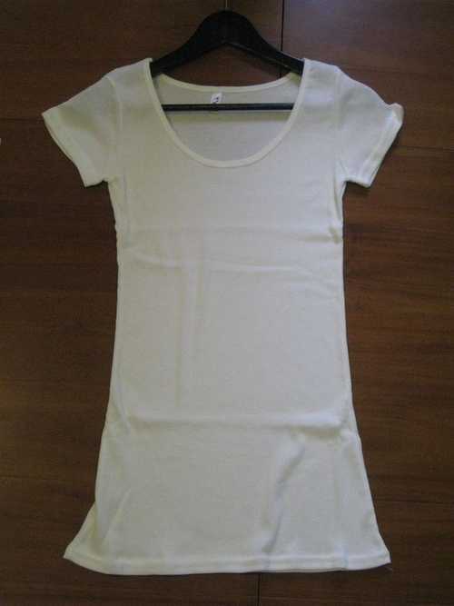 2.MIT台灣製。坑條棉超彈性圓領長版素T (白色) $100 單穿或當內搭都很適合喔。