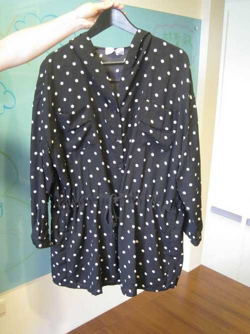4.雙大口袋水玉點點抽繩寬板絲綢衫 (黑色) $200 穿起來真的很舒服。寬版剪裁。雙大口袋。腰際有抽繩可調整寬鬆度。排釦可全開。袖子有反扣設計。當罩衫穿也OK唷~它的材質是略滑滑的絲綢質感。是原布質感超優。