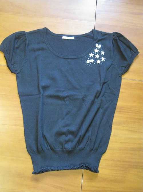 10.黑色針織胸口小繡花上衣 $100 胸口的繡線小花是粉紅色的呦,這件質感很好。