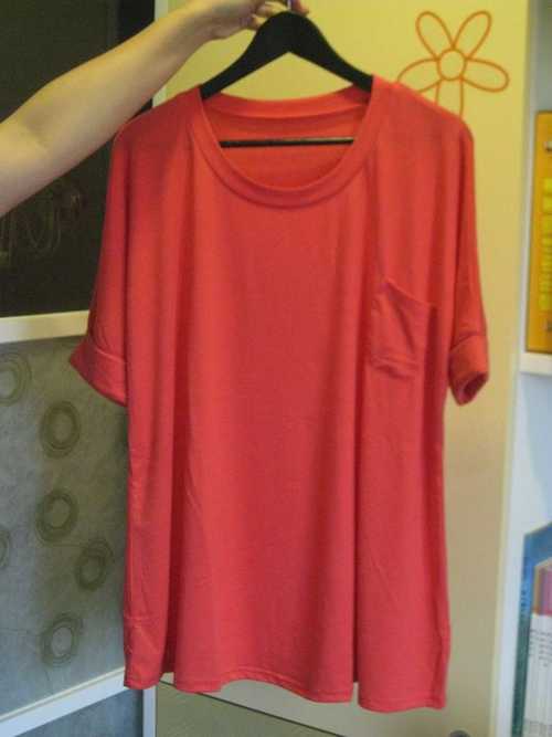 18.紅色軟棉單口袋袖反折寬版上衣 $150 這件質感好舒服啊^^