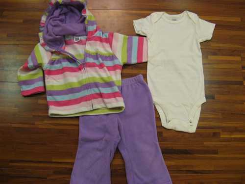 1、carter套裝,價格:100元,購於costco,裡面白色那件完全完穿過,外套和褲子大約穿過五、六次吧!