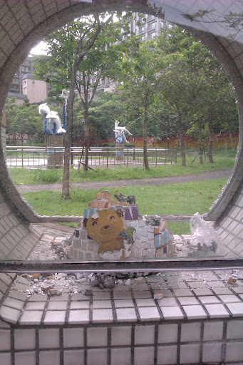 另一隻災民,玻璃早被敲破,少了玻璃保護,尾巴的馬賽克磚挖空,下一步是哪個部分被傷害?令人憂心。