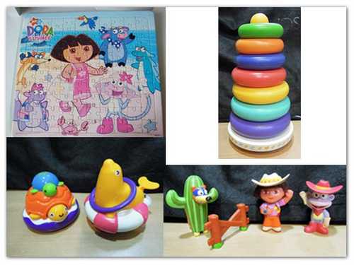 5.二手玩具:Dora拼圖30元、套圈圈80元、洗澡玩具60元、Dora玩具(購於反斗城)100元,全部合250元!