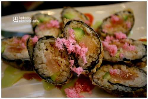特別的是壽司包好後再炸過,很特別的口感