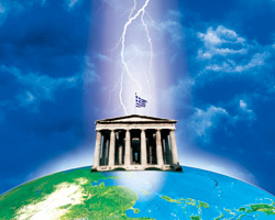 五月十八日,在奧運發源地的希臘雅典競技場中,希臘將奧運聖火傳交給今年主辦國英國的代表安妮公主,兩國代表在場中接受群眾熱烈歡呼,五輪相連的世界一家精神,終究是最崇高美好的普世價值;諷刺的是,就在兩天之前,英國官方才對希臘問題發表了極度悲觀、也極度不爽的評論。