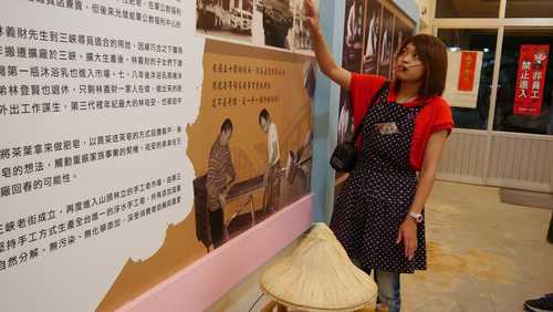 導覽從介紹創辦人開始,當初老先生是扛著扁擔叫賣的喔"茶摳~沙文~"