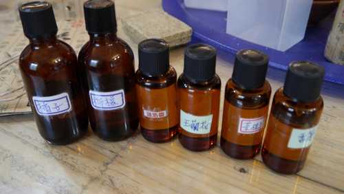 接著要選擇喜愛的精油滴入,接著再將溫熱的皂基倒入成型