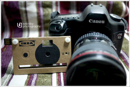 相機的材質是使用回收紙板做為機身、加上相機上方的兩顆塑膠螺絲和兩顆3號電池,以及裝置的外顯USB機關,透過觀景窗按下快門拍照後,將機身上的USB裝置直接插入電腦即可存入,雖然因為記憶體的限制一次最多僅能拍40張照片,但可刪除後重覆使用,更妙的是,這台「KNÄPPA紙片機」還標榜擁有如一般相機的Zoom in/out及防手震等功能,真是太神奇了 ^^