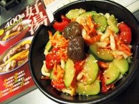 下午兩點半才想起還沒吃中餐,去廚房找吃的之前看了一下網路食譜(南洋的酸辣涼麵),但家裡沒有雞醬/沒有青木瓜/沒有蝦醬/沒有泰國酸辣湯醬/沒有花生,泰式酸辣涼麵和越南涼麵都做不了....只好將就家裡現有的材料~抓來就配啦~XD