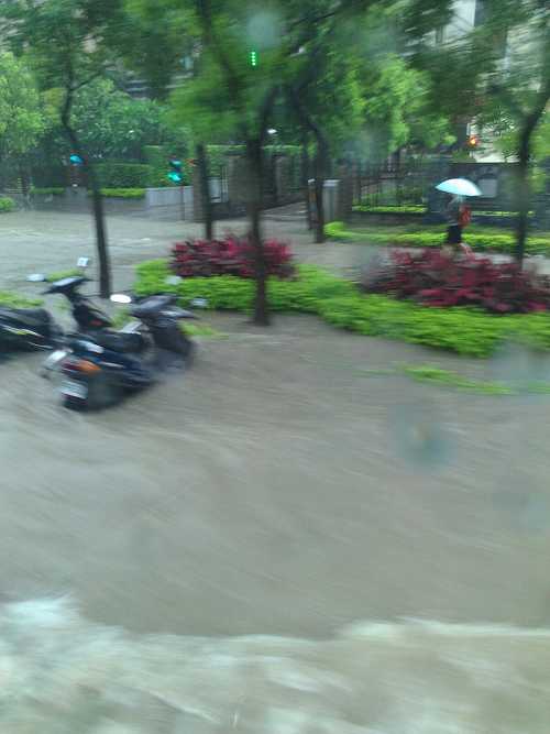 各個社區應該基地都比較高,至少,我出門前,我家社區,沒淹水啦!