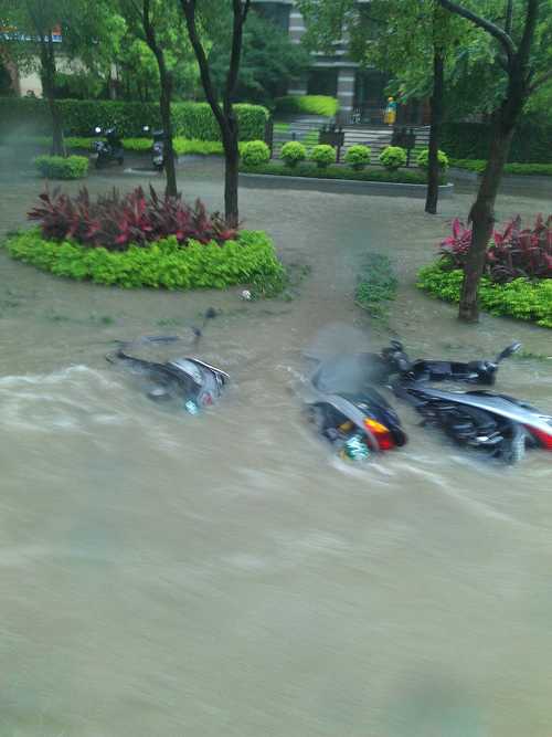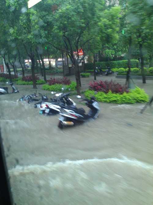 看角度大大應該跟我住耶魯A棟~後來一度淹到大道上快到社區門口了!還好雨小水都退了~