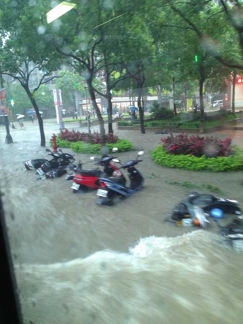 今天沒辦法上班, 因為幾個路口淹水+塞車, 甚至封閉;