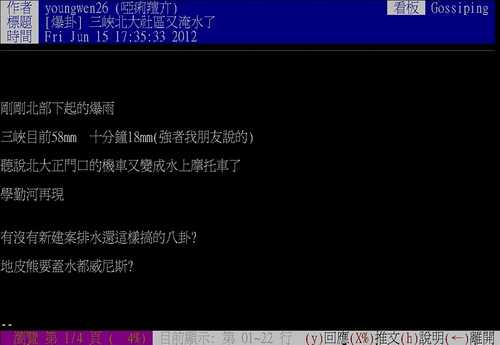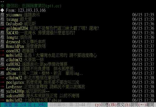 淹水夠可憐的,民眾何其無辜?講有建設性的或報告狀況就算,有的還這樣酸,真是醜陋。 ...