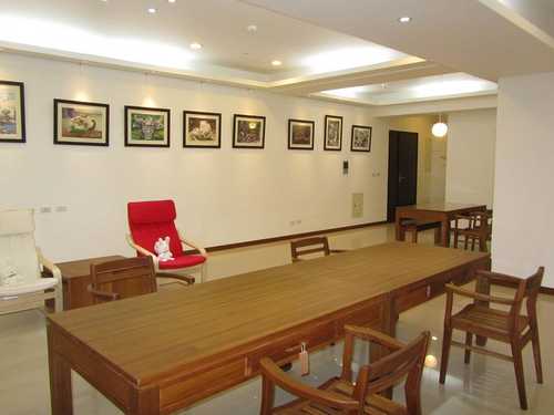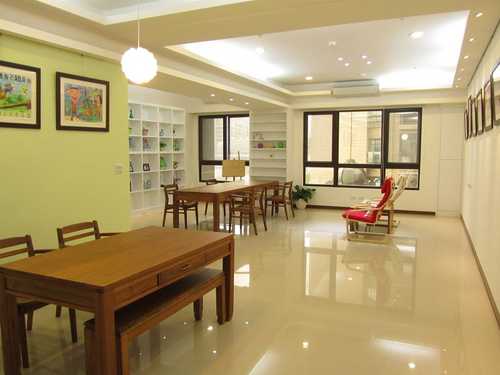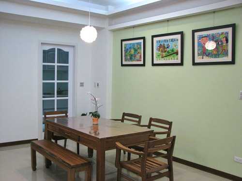 沒有電視、沙發,保留彈性空間,因為這裡未來可能成為大兒子以畫會友的工作室。(牆面是大兒子國中的作品)