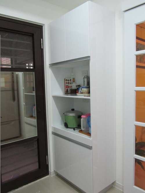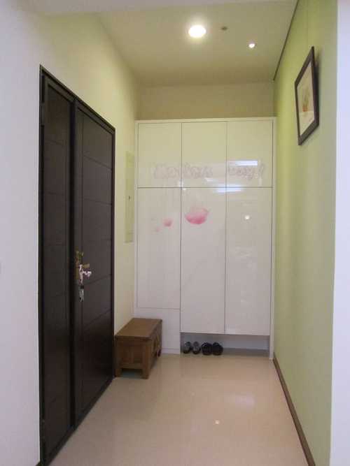#11 右邊畸零空間做了一個小衣櫥,放穿過暫不洗的衣服;房門玄關上請木工順便做個儲藏櫃。