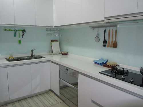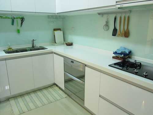 #8 廚房--選用純白的人造石和結晶鋼烤門板,看起來更具質感
