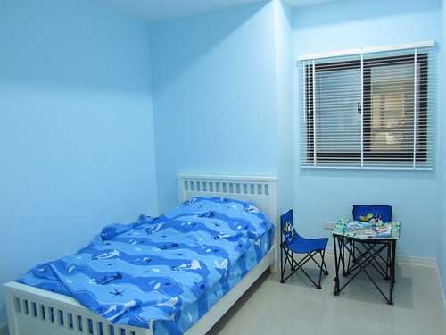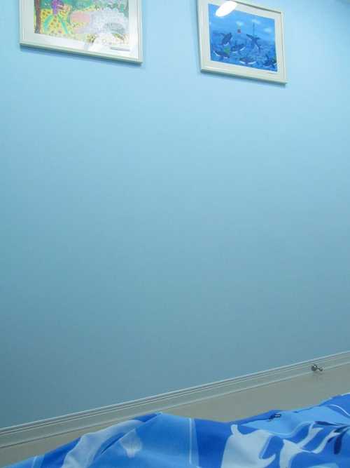 #16 牆上他的小海豚畫作與床單圖案不謀而合、相映成趣。
